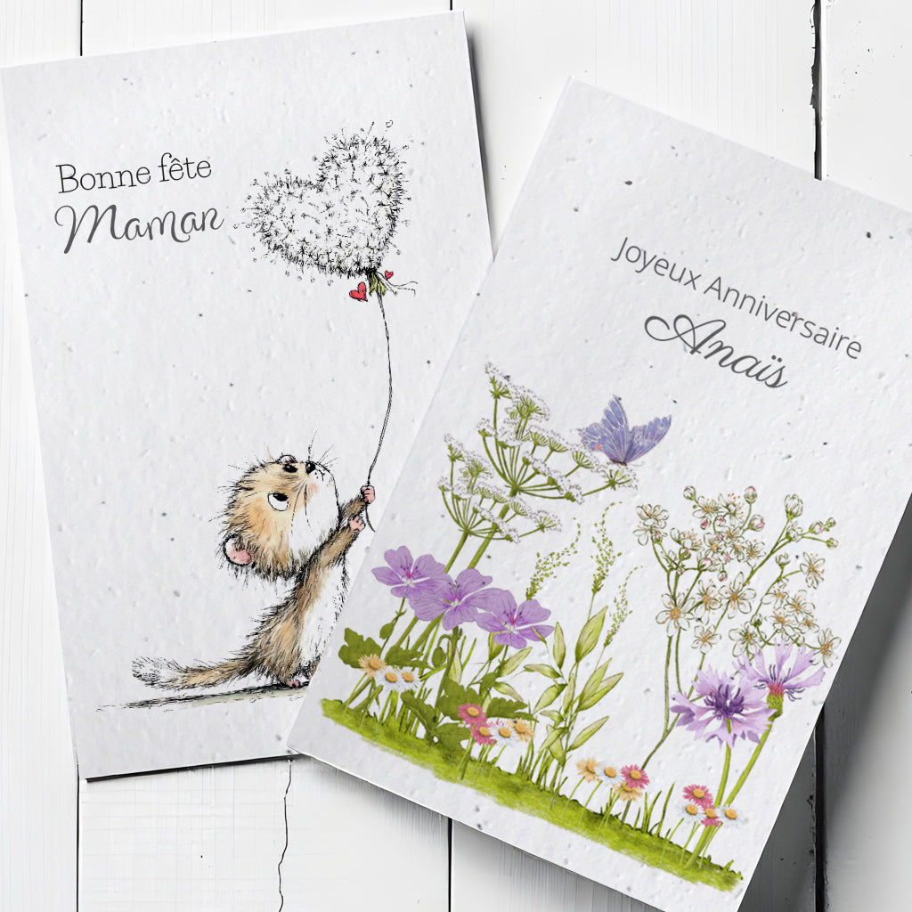 All our eco-friendly products are designed and handmade in our workshop in the Corrèze, France. We only use high quality, 228gsm seed paper